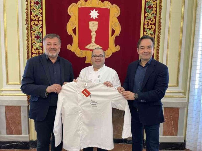 El alcalde y el concejal han hecho una entrega simbólica al chef del Parador, Miguel Ángel Martínez.
