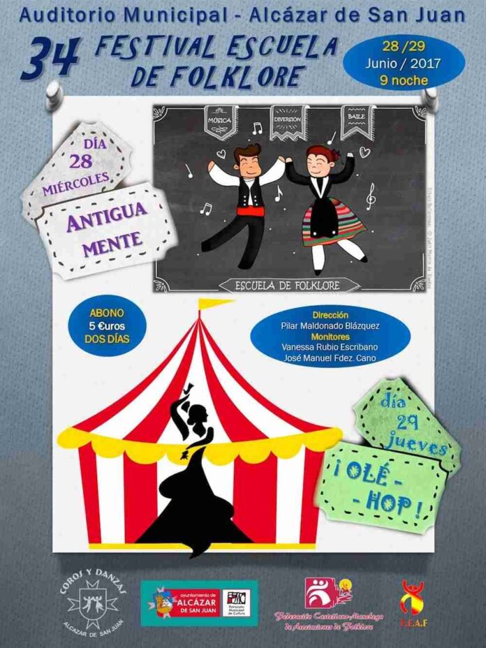 Los próximos 28 y 29 de junio de 2017 a las 21:00 horas en el Auditorio Municipal de Alcázar de San Juan (Ciudad Real) se celebrará el 34 Festival Escuela de Folklore.