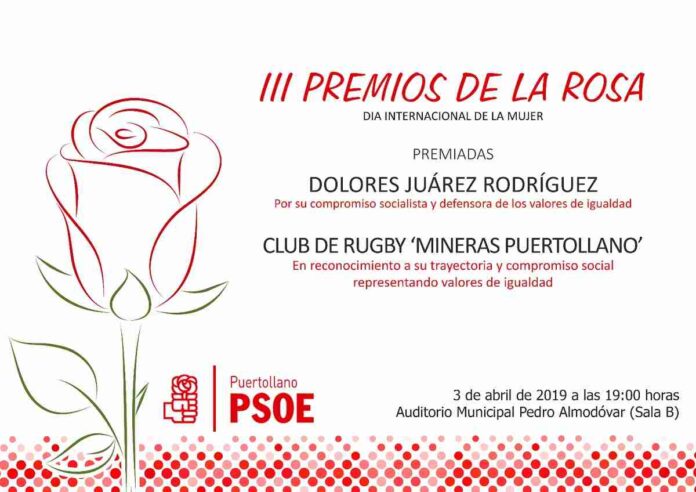 En esta ocasión las premiadas serán el Club de Rugby Mineras de Puertollano, en reconocimiento a su trayectoria y compromiso social, respetando los valores de Igualdad, a Dolores Juárez, histórica militante del PSOE y contará como invitada especial a Cristina Maestre, vicesecretaria regional del PSCM.