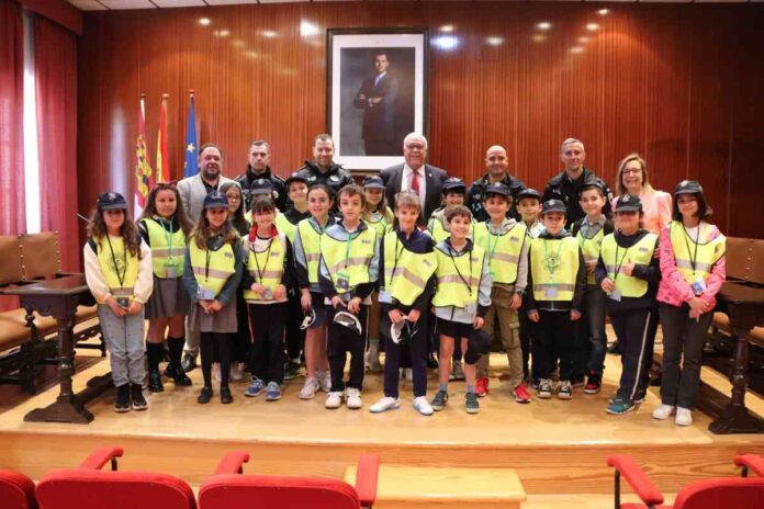 Junto a los agentes de la Policía Local, los niños y niñas recorrieron las calles del centro de la ciudad, hablaron con comerciantes, regularon pasos de peatones y comprobaron el uso del cinturón de seguridad y documentación de los vehículos.