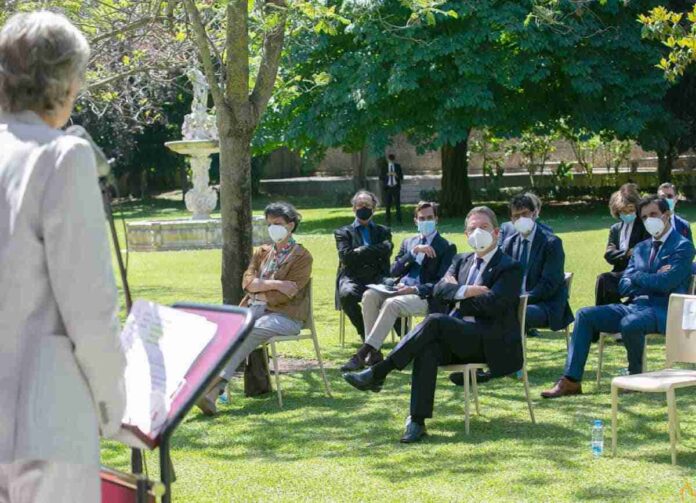 Un acto en el que han estado presentes la directora del INAEM, Amaya de Miguel, el presidente del Gobierno regional, Emiliano García-Page, el presidente de la Diputación de Ciudad Real; José Manuel Caballero, el alcalde de Almagro, Daniel Reina, entre otros.