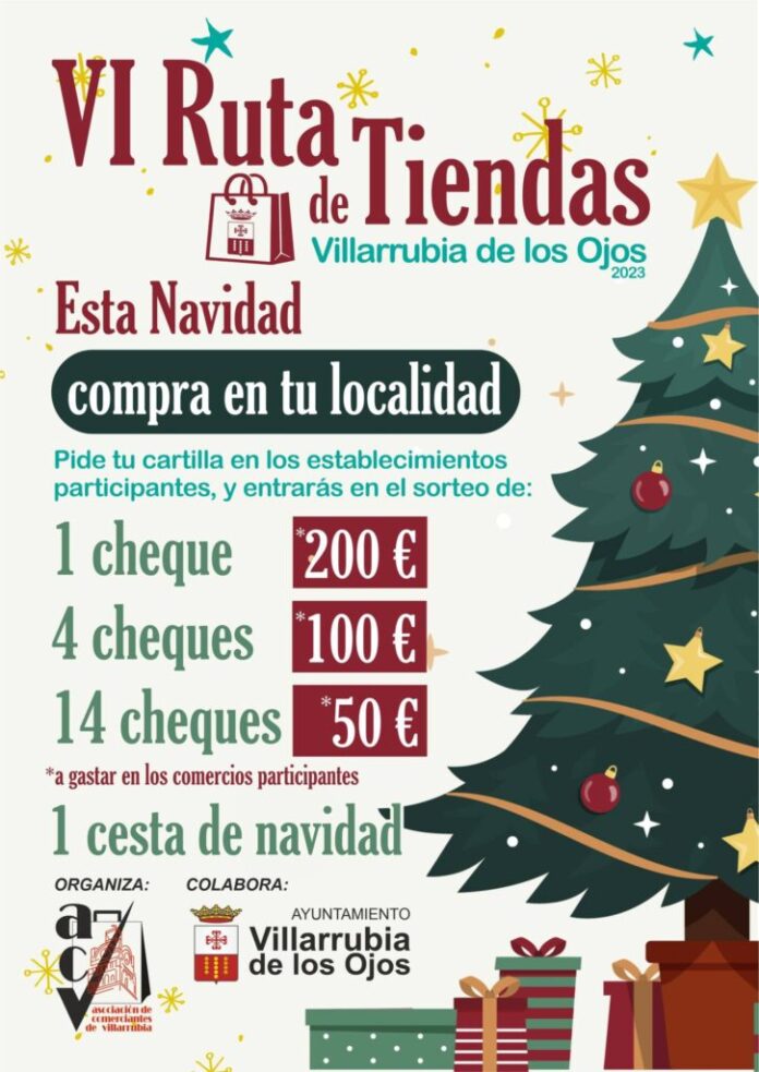 Villarrubia de los Ojos (Ciudad Real) comenzó el pasado fin de semana la 6ª Ruta de Tiendas, una campaña en la que participan más de 50 comercios adheridos de la localidad y que está organizada por la Asociación de Comerciantes de la localidad, con la colaboración del Ayuntamiento. Una iniciativa que estará activa hasta el 5 de enero de 2024 y que reparte un total de 1.300 euros en premios, y una cesta Navideña.