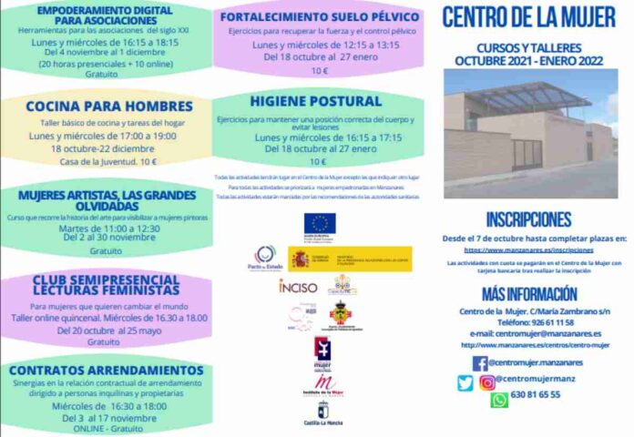 Desde ayer está abierta la inscripción para los cursos del Centro de la Mujer de Manzanares (Ciudad Real). El mismo hasta cubrir plazas y abarca una gran variedad de temas.