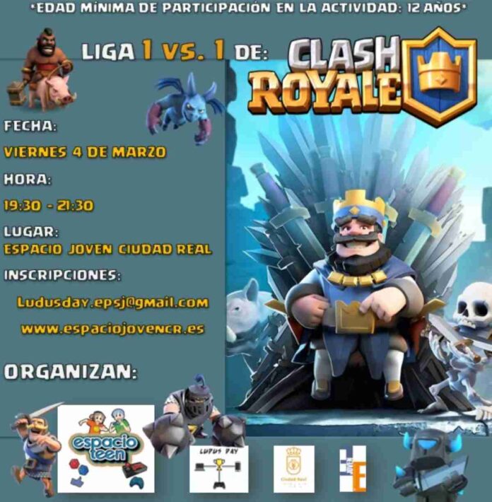 Ya pueden inscribirse en el torneo Clash Royale que se llevará a cabo el viernes 4 de marzo. En horario de 19:30 a 21:30 horas en el Espacio Joven de Ciudad Real.