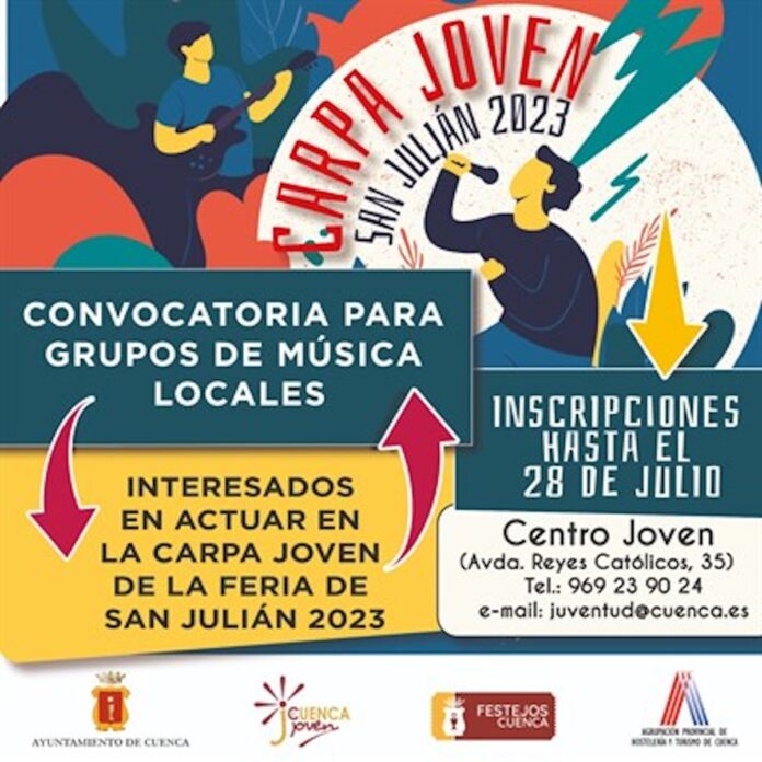 Los grupos o solistas de música locales que quieran participar en la Carpa Joven en el recinto ferial de la Feria y Fiestas de San Julián 2023, pueden aprovechar para inscribirse, pues la concejalía de Festejos del Ayuntamiento de Cuenca, ha abierto ya el plazo para inscripción, el cual finalizará el 28 de julio.