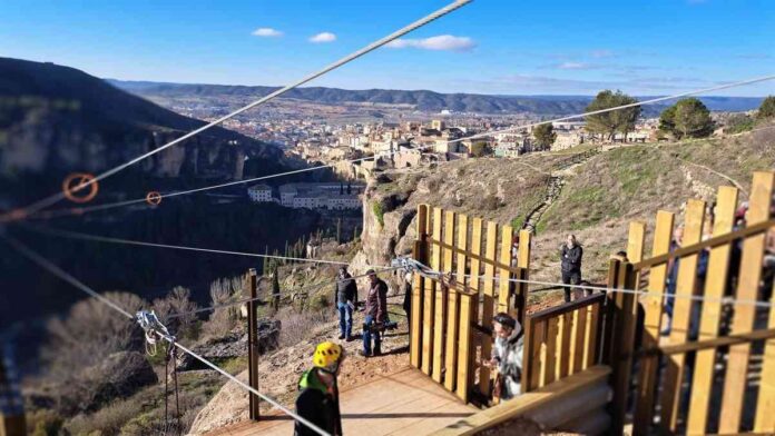 La tirolina urbana doble más grande de Europa, que está ubicada en Cuenca, ha abierto este lunes sus puertas con un primer viaje institucional, y la apertura oficial al público se llevará a cabo este lunes.