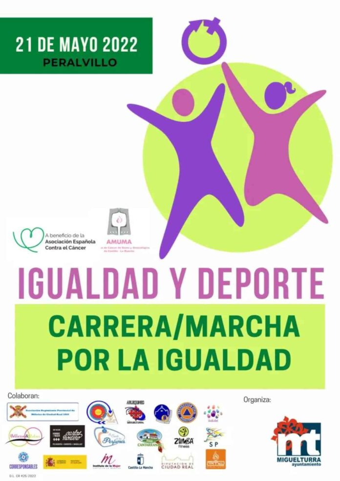 Un programa de Igualdad y Deporte y de la Carrera/Marcha por la Igualdad que se lleva a cabo con la colaboración y patrocinio del Ministerio de Igualdad, Junta de Comunidades de Castilla-La Mancha, Instituto de la Mujer, Diputación Provincial de Ciudad Real, Áreas de Deportes, Igualdad, Salud, y Peralvillo, Protección Civil, Finca Cantarranas, Asociación Regimiento Provincial de Milicias de Ciudad Real 1809, Belleza y Relax, Peluquería Carlos Montero, La casita de los Perfumes, Zumba Fitness Nuria Sánchez, Gimnasio SP Alto Rendimiento, Club de Tiro con Arco Don Gil, Club Arlequines Miguelturra y Club Fondistas de Miguelturra.