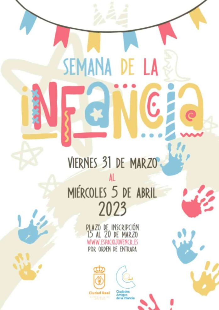 Una variada programación de actividades para la Semana de la Infancia 2023 se realizarán en el Espacio Joven de Ciudad Real del viernes 31 de marzo al miércoles 5 de abril. El plazo de inscripción es del 15 al 20 de marzo en www.espaciojoven.es y por orden de entrada.