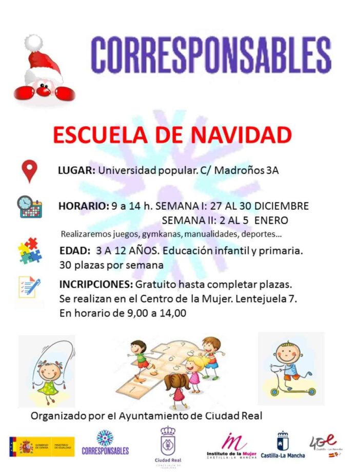 Este diciembre se realizan actividades del programa “Navidad conciliadora” que realiza a través del Plan Corresponsables el ayuntamiento de Ciudad Real. El mismo organizado por la Concejalía de Igualdad, el Centro Local de la Mujer, dentro de la línea de subvenciones gestionadas por el Instituto de la Mujer de Castilla-La Mancha y financiado con fondos procedentes del Ministerio de Igualdad.