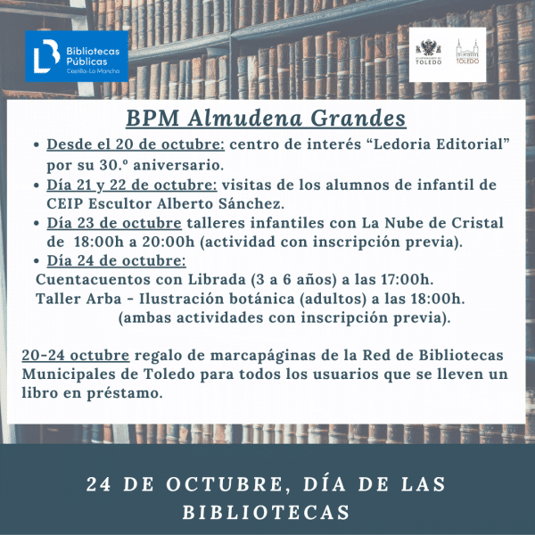La Biblioteca Pública Municipal Almudena Grandes se alista para celebrar el Día de las Bibliotecas con una emocionante semana repleta de actividades para todos los públicos. Este evento anual se convierte en una oportunidad esencial para destacar la relevancia de las bibliotecas en la vida comunitaria y alentar el amor por la lectura.