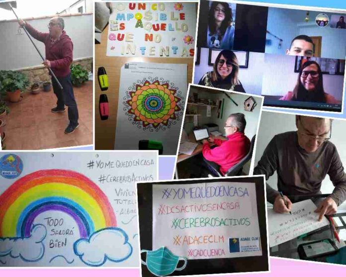Además, en la página web de ADACE CLM (www.adaceclm.org) se ha habilitado una sección, #yomequedoencasa, donde se está compartiendo diferente material que los profesionales emplean con sus usuarios, de manera que todo el mundo que lo precise pueda acceder al mismo: ejercicios de estimulación cognitiva, material para el apoyo psicológico, el cuidado físico o actividades para el ocio.