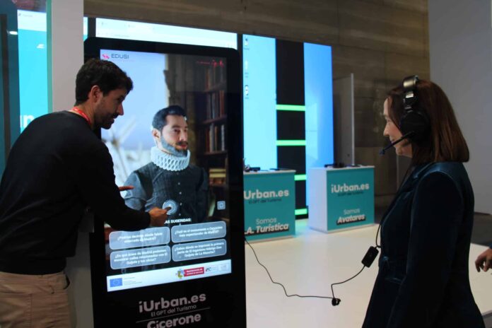 El proyecto «Smart Tourism» de Alcázar de San Juan es innovador y revolucionario, incorporando GPT con un avatar, el personaje de Cervantes, que actúa como Oficina de Turismo virtual a cualquier hora y en cualquier idioma. Andrés Martínez, CEO de IURBAN, destacó que este proyecto impulsasdo por el área de Turismo de Alcázar de San Juan es pionero, utilizando el entorno de GPT para proporcionar información personalizada de manera instantánea, y aprovechando para registrar valiosos datos de los visitantes.