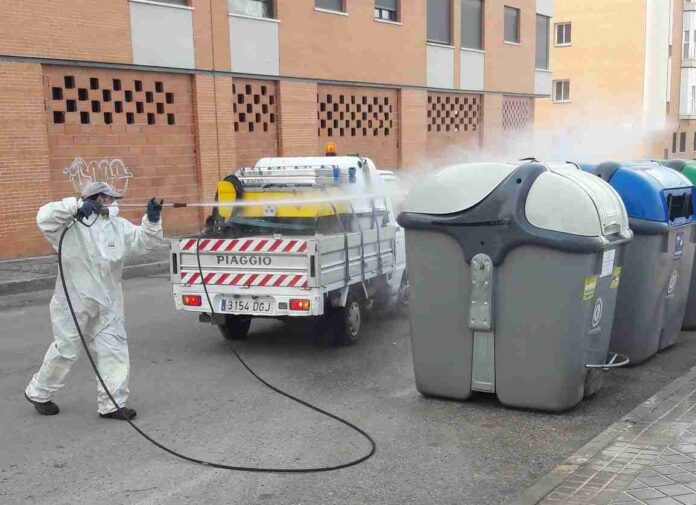 El ayuntamiento de Alcázar de San Juan ha concluido la desinfección de todas las calles de la ciudad. Ha recorrido esparciendo desinfectante toda la localidad recorriendo tanto las calles del centro como las de todas las urbanizaciones de nueva construcción.