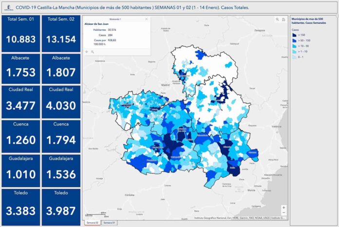 Los datos del número de contagios por poblaciones de más de 1.000 habitantes se puede consultar la siguiente página de Sanidad CLM.