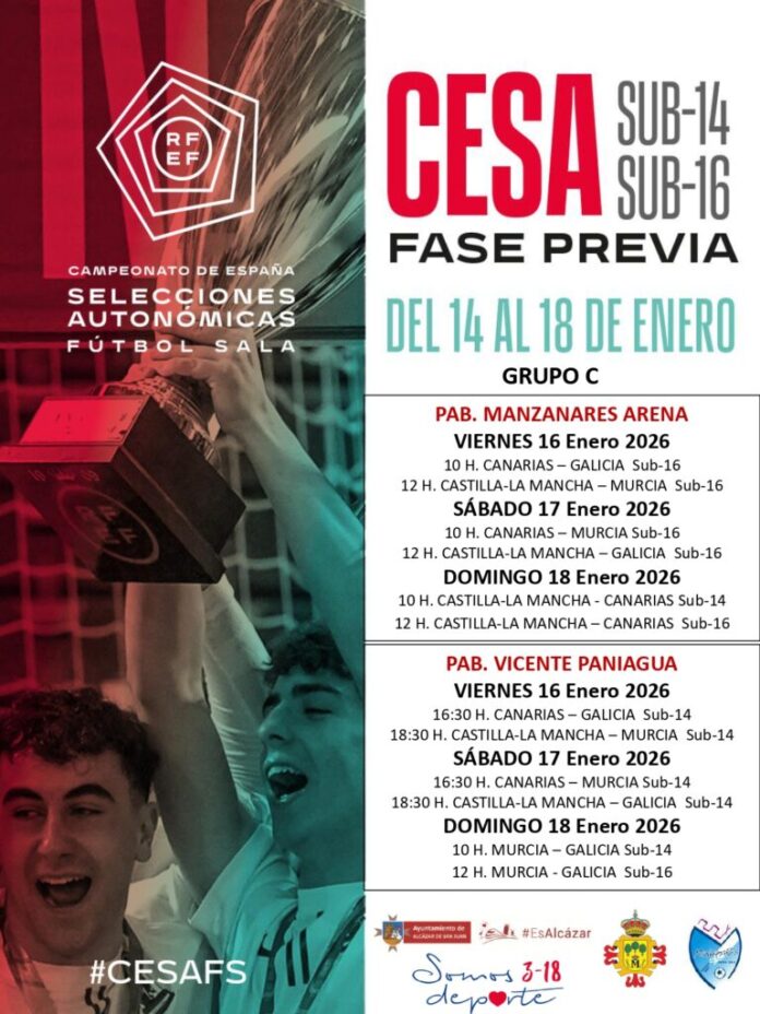 Alcázar de San Juan se prepara para acoger nuevamente un evento deportivo de gran envergadura en el ámbito nacional, al convertirse en sede de la fase previa del Campeonato de España de Selecciones Autonómicas de fútbol sala en las categorías Sub-14 y Sub-16. Los encuentros del grupo C tendrán lugar del 16 al 18 de enero de 2026, distribuidos entre el Pabellón Vicente Paniagua de Alcázar y el Pabellón Manzanares Arena en Manzanares. En esta fase participarán las selecciones autonómicas de Castilla-La Mancha, Canarias, Galicia y Murcia.