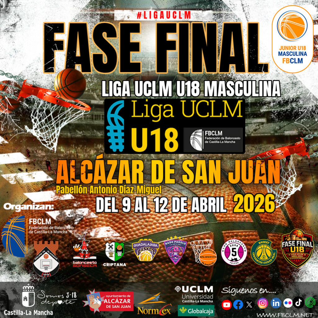 Alcázar de San Juan será el epicentro del baloncesto juvenil de Castilla-La Mancha durante la celebración de la Fase Final de la Liga UCLM U18 masculina, que tendrá lugar del 9 al 12 de abril en el Pabellón Antonio Díaz-Miguel. Este torneo regional reunirá a los ocho mejores equipos, cinco del Grupo A y tres del Grupo B, en una competición que promete ser un escaparate del talento joven de la comunidad.