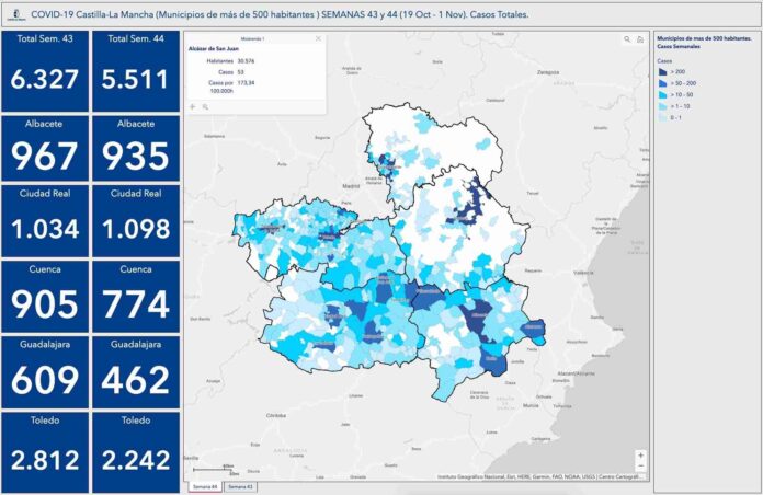 Los datos del número de contagios por poblaciones de más de 1.000 habitantes se puede consultar la siguiente página de Sanidad CLM.