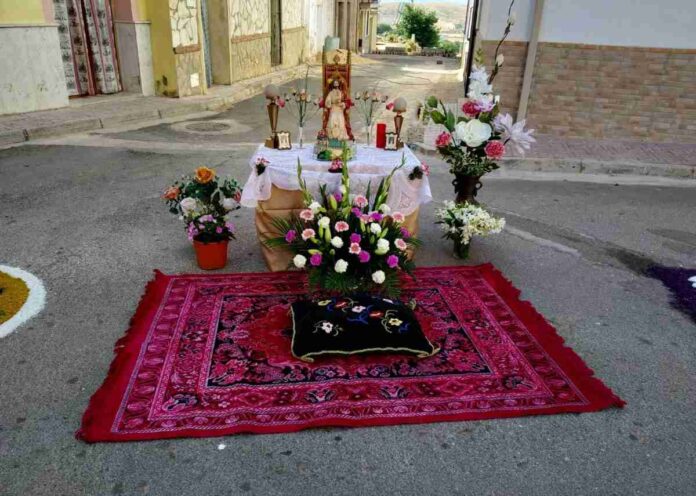 Con alfombras de serrín y altares han engalanado las calles de todo el centro del municipio de Terrinches, el pasado fin de semana para celebrar la festividad del Corpus Christi. Estas bonitas decoraciones que hicieron lucir las calles de la localidad, fueron elaboradas durante la madrugada del sábado por una veintena de voluntarios con el apoyo del Ayuntamiento de Terrinches. La actividad que se ha celebrado por primera vez en el lugar, ha sido organizada por la Universidad Popular y en las mismas han participado colectivos y asociaciones de Terrinches.