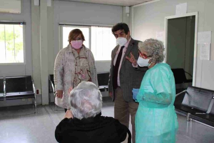 Olmedo y García Sánchez felicitaron a los profesionales de Enfermería por su dedicación y entrega y departieron con algunas de las personas vacunadas, que expresaron su alegría porque con la vacuna ven más cerca la derrota del virus al disminuir las probabilidades de contraerlo.