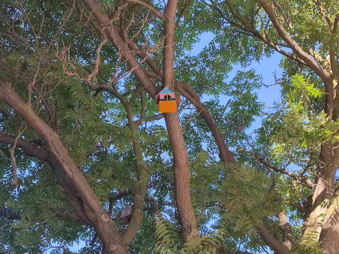 Los alumnos del Colegio María Inmaculada con la colaboración de la concejalía de Medio Ambiente del ayuntamiento de Puertollano (Ciudad Real) han colaborado colocando nidos para pájaros en el Paseo San Gregorio de la localidad.