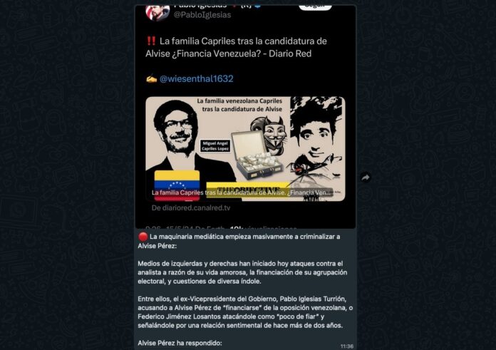 Alvise Pérez, candidato al Parlamento Europeo por la agrupación “Se Acabó la Fiesta”, ha denunciado públicamente lo que describe como una campaña de desinformación en su contra. Según Pérez, medios de comunicación tanto de izquierda como de derecha han iniciado ataques que abarcan desde su vida amorosa hasta la legitimidad de la financiación de su campaña.