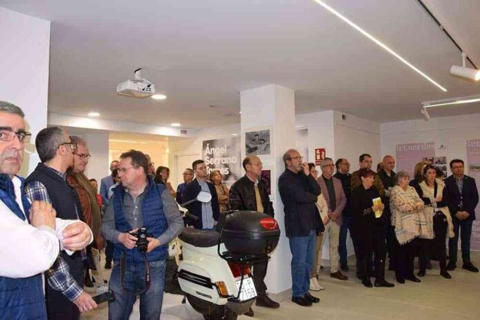 Manoli Justo explicaba que se trata de una exposición muy colaborativa entres diferentes personas y colectivos que se realiza como homenaje a Ángel Serrano Torres una persona muy significativa en la vida social y cultural de la localidad. La muestra se compone de una serie de paneles autobiográficos, galerías fotográficas, además puede verse la colección de cámaras fotográficas que tenía Ángel, el laboratorio con todos los elementos propiedad de Kintafoto y una proyección de diapositivas en las que aparecen personas vinculadas a él desde la infancia. También se recoge en la sala una proyección que preparó el propio Ángel Serrano con Don Amadeo; sin olvidar la vespa que tantos años condujo Ángel y por la que era reconocido. En definitiva, tal y como apuntaba Manoli Justo, un gran patrimonio documental-audiovisual que se convierte en un tesoro para las futuras generaciones.