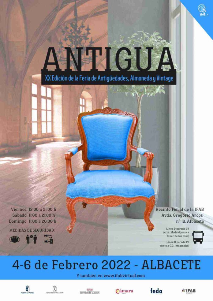 Del 4 al 6 de febrero de 2022, se celebrará Antigua, la Feria de Antigüedades, Almoneda y Vintage de Albacete. Uno de los eventos anuales que reúne a anticuarios, restauradores y amantes del arte clásico. Y que en esta cita en Albacete, pueden contemplar esos grandes tesoros que con el tiempo se revalorizan.