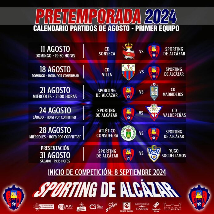 El Sporting de Alcázar ha anunciado el inicio de su preparación para la temporada 2024-25, con la fecha de comienzo de la competición fijada para el domingo 8 de septiembre. Durante el mes de agosto, el equipo trabajará intensamente para afinar su rendimiento y afrontar con garantías los desafíos que se presenten en el nuevo curso.
