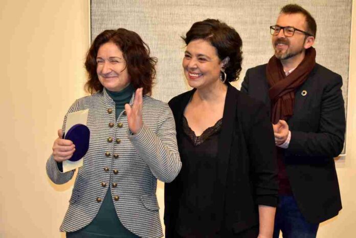 La alcaldesa de Ciudad Real, Pilar Zamora, ha hecho entrega a la artista Arminda Lafuente del primer premio del Certamen “López-Villaseñor” de Artes Plásticas en su 28ª edición, dotado con 11.000 euros y medalla, por su obra “La suma IV”.