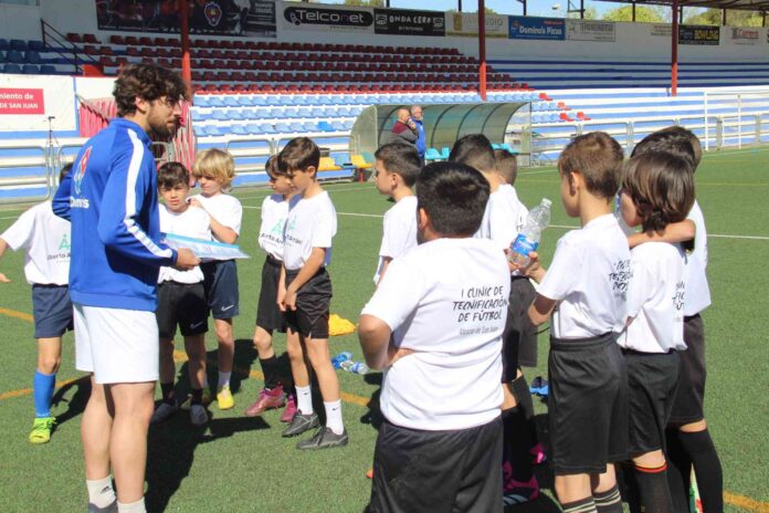 El Campo de Fútbol Municipal Manuel Delgado Meco acogía, desde este lunes 3 de marzo, el comienzo del I Clinic de Tecnificación del Sporting de Alcázar. Se trata de la primera edición de un ‘curso intensivo’ de fútbol compuesto de 3 jornadas en la que están participando 65 niños de entre 8 y 15 años, que invierten la mañana en un formato de entretenimiento activo. El presidente del IMD, Javier Ortega, acudió al ‘Campo A’ para acompañar a Pablo Fuentes y Alberto Serrano, primer y segundo entrenador respectivamente del Sporting de Alcázar.