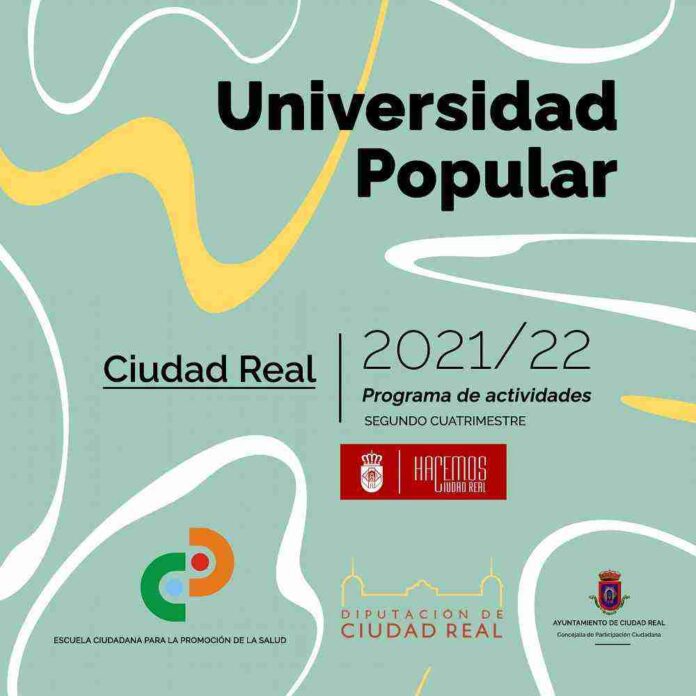 Desde el 25 de enero y hasta el día 31 estará abierto el periodo de inscripción para las actividades de la Universidad Popular del segundo cuatrimestre. La concejala de Participación Ciudadana, Sara Martínez, ha explicado que se han “mantenido todos los cursos y talleres que tenían demanda y que han sido un éxito durante estos meses, como por ejemplo la escuela de promoción de la salud, el curso de historia, conoce Europa, taller de emociones o teatro”. Una programación que ha tenido en cuenta el estudio de demandas socioculturales, que se ha realizado durante el periodo de Navidad, en el que destaca la solicitud de contenidos como pueden ser las nuevas tecnologías, el deporte o la música. Martínez ha destacado que “la Universidad Popular pretende avanzar y ahondar en contenidos de calidad, de innovación y de aprendizaje positivo para todos los vecinos y vecinas de Ciudad Real”. Toda la información está disponible en la web hacemos.ciudadreal.es