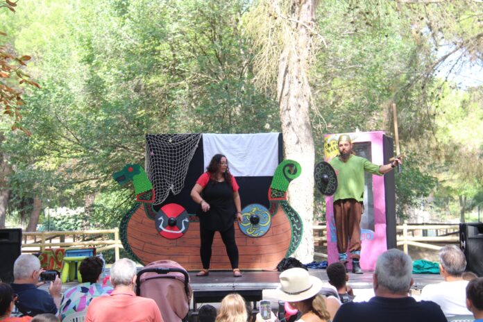A las 12 de la mañana comenzaba ‘Arrea, vienen los vikingos’, espectáculo a cargo de la compañía de teatro El mono sin pelo. Una obra familiar que en palabras Gemma Cañas, una de las integrantes de la agrupación teatral, “va de jugar, jugar y jugar. En la obra me compro un muñeco en la feria, un vikingo, y tanto los niños como yo nos lo pasamos pipa con él”.