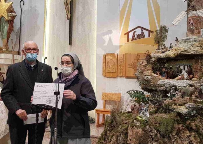 Este año la Asociación Belenita Buen Pastor, ha destinado sus donativos, por 1.200 euros, a la Institución Benéfica del Sagrado Corazón (Cotolengo). Los que fueron entregados ayer 6 de enero, por parte del Presidente de la Asociación Belenista, Luís Enrique Martínez Galera a la hermana Mª José López la cual representaba a la Institución.
