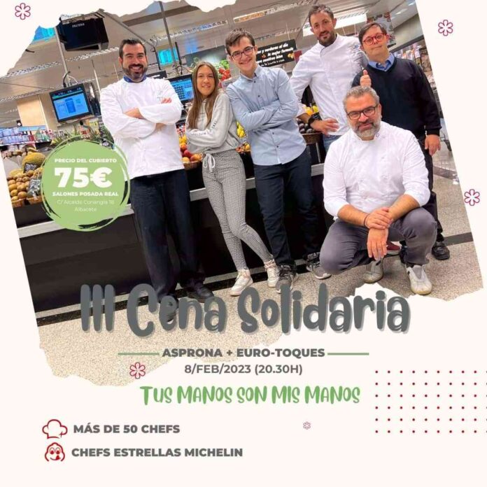 Después de dos años Asprona y Euro-Toques celebran de nuevo la Cena Solidaria ‘Tus manos son mis manos’ que este año cumple su tercera edición. Será el próximo 8 de febrero en el Restaurante Posada Real de Albacete y, al igual que otras ediciones, participan más de 50 cocineros de la región incluidos chefs Estrellas Michelin.