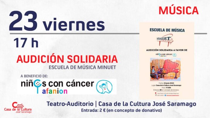 La Escuela de Música Minuet llevará a cabo una audición solidaria a beneficio de AFANION niños con cáncer, el próximo viernes 23 de junio a partir de las 17 horas.