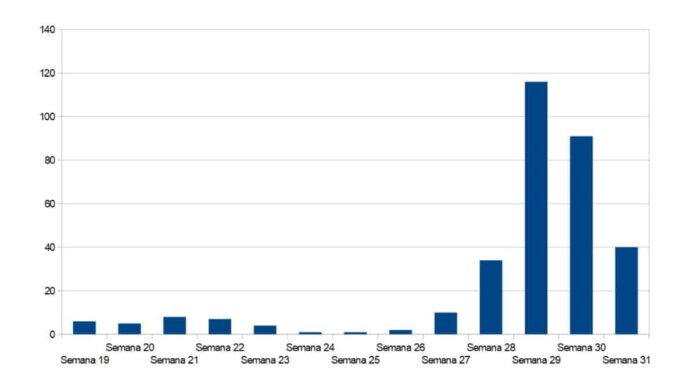 De esta forma, en la semana 31 (del 2 al 8 de agosto) se registraron 40 positivos por COVID-19, lo que supone menos de la mitad que en la semana anterior, una cifra que se sitúa en 91. En cuanto a la incidencia acumulada en catorce días, Manzanares cuenta con 729’32 casos por 100.000 habitantes, por lo que continúa en nivel de riesgo extremo de contagio.