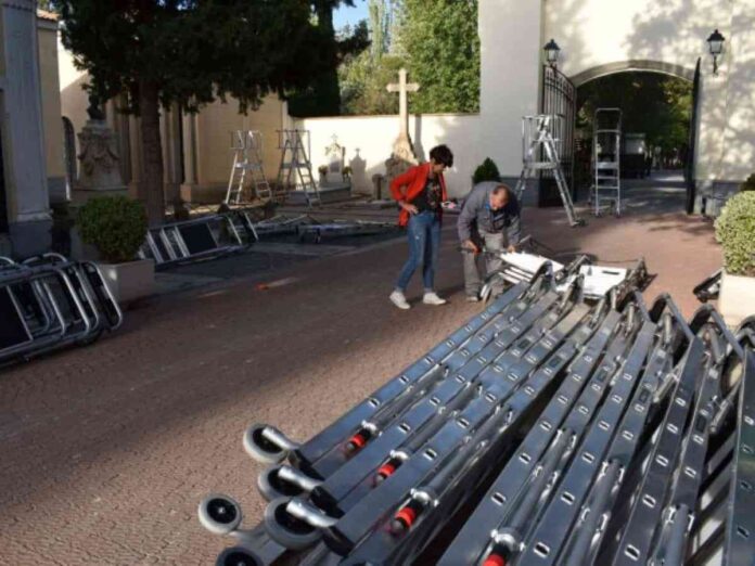 Las primeras 100 nuevas escaleras adquiridas por el ayuntamiento de Albacete para el cementerio municipal Nuestra Señora Virgen de los Llanos y para los camposantos en las pedanías de Argamasón, El Salobral y Santa Ana fueron distribuidas días atrás. Se espera que en estos días llegarán las 200 restantes.