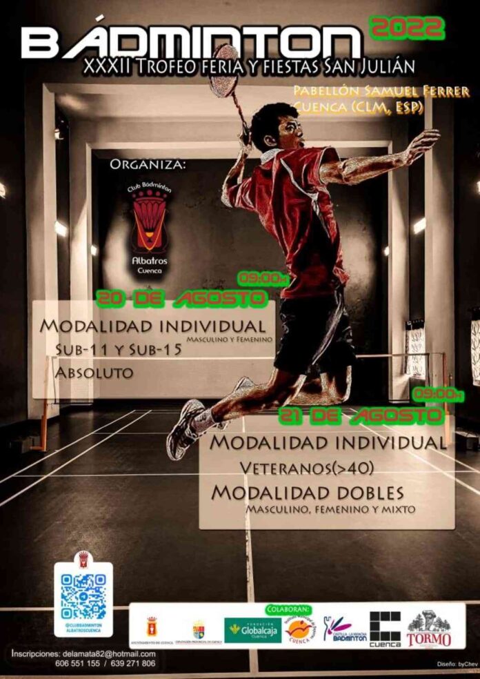 Amantes del deporte disfrutarán de Bádminton XXIII Trofeo Feria y Fiestas de San Julián 2022. El mismo tendrá lugar los días 20 y 21 de agosto. Organizado por Albatros Cuenca y que ya pueden inscribirse los interesados. El evento se celebrará en el Pabellón Samuel Ferrer de la Ciudad de Cuenca. En horario a partir de las 9 horas.