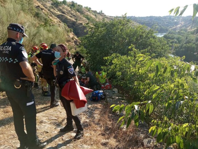 El Cuerpo de Bomberos de Toledo ha procedido en la tarde de este domingo al rescate de un hombre de 53 años que responde a las iniciales J.G.G, empadronado en Toledo, que se precipitó desde el yacimiento arqueológico del Cerro del Bú.