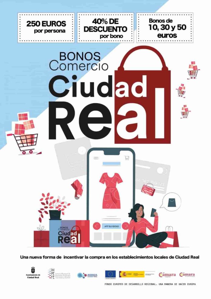 Para ello, el Ayuntamiento y la Cámara de Comercio de Ciudad Real, pondrán a disposición del consumidor “Bonos de Consumo Comercio Ciudad Real” para incentivar la compra en los establecimientos locales de Ciudad Real, subvencionando el gasto en 50.000 € lo que supone un estímulo al consumo de 125.000 € en la ciudad.