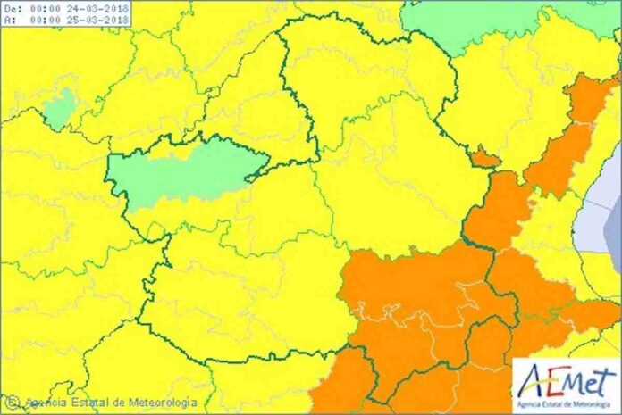 Castilla-La Mancha está en aviso amarillo y Albacete con aviso naranja. En el caso de nuestra localidad Alcázar de San Juan está en aviso amarillo como también informó Protección Civil de Alcázar de San Juan. El aviso por vierto estará activo desde las 00:00 horas de esta noche hasta las 19:00 horas de mañana sábado.