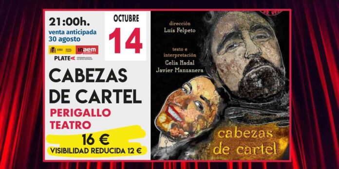 El viernes, 14 de octubre a las 21:00h se representará en el Teatro Emilio Gavira en Alcázar de San Juan la premiada obra teatral, “Cabezas de cartel”, dirigida por Luis Felpeto y escrita y protagonizada brillantemente por Celia Nadal y Javier Manzanera.