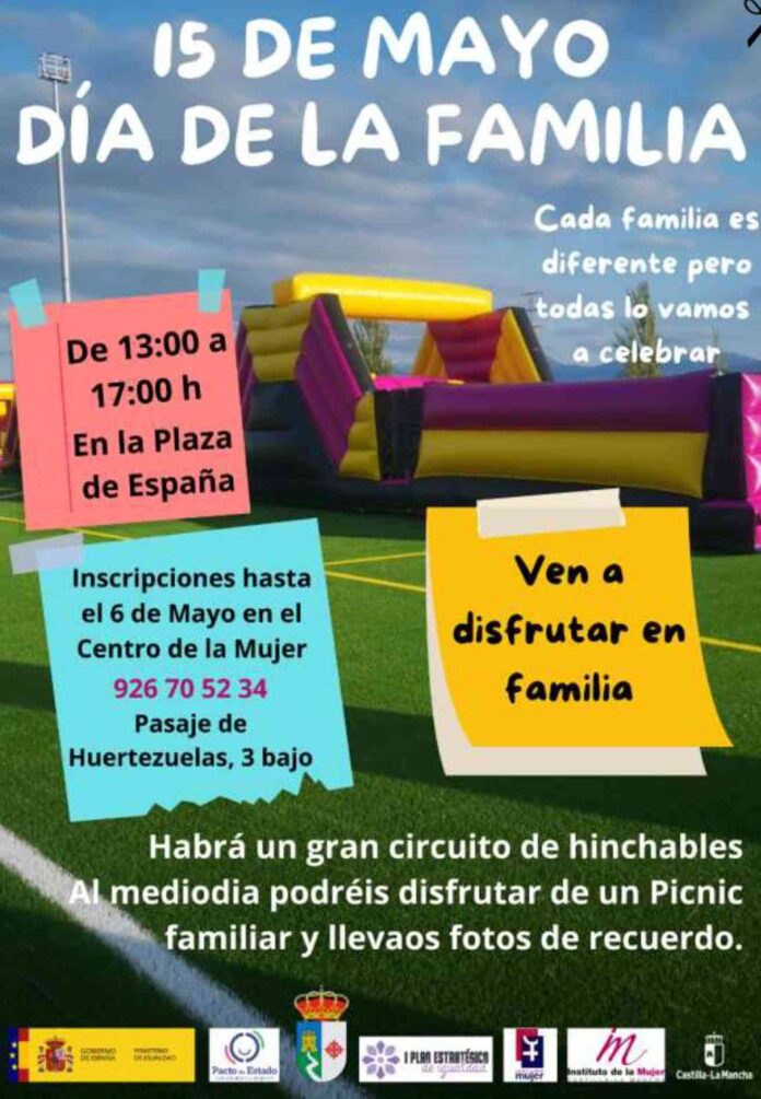 Desde la Concejalía de Mujer e Igualdad, se ha organizado una jornada de convivencia en la que se pretende implicar a todos los miembros de la familia, con divertidas pruebas deportivas en hinchables, fotomatón, y hasta un picnic para reponer fuerzas.