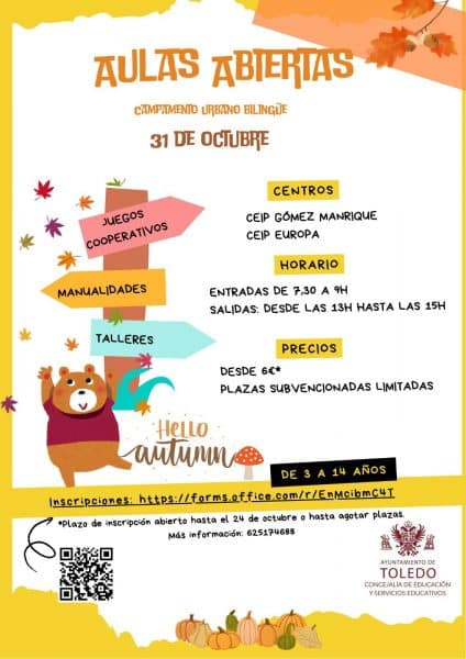El campamento comenzará el 31 de octubre de 2025, coincidiendo con el primer día no lectivo del calendario escolar. Los centros educativos que acogerán este programa son el CEIP Gómez Manrique y el CEIP Europa. Las actividades están programadas para iniciar desde las 07:30 horas, permitiendo a los padres recoger a sus hijos en un horario flexible que va desde las 13:00 hasta las 15:00 horas.