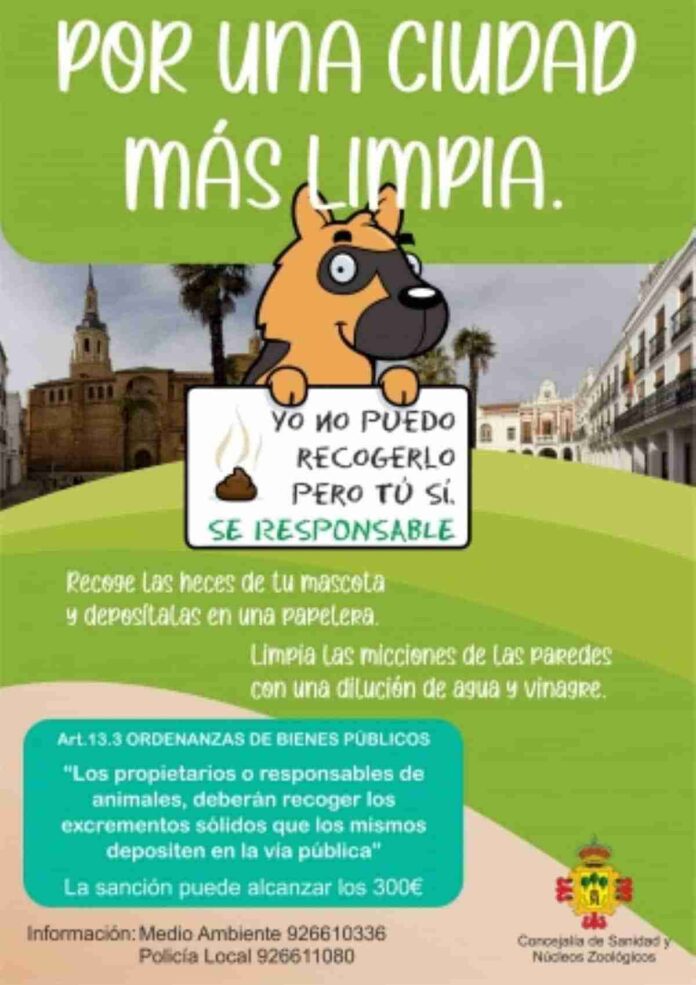 El ayuntamiento de Manzanares (Ciudad Real) lanza ‘Por una ciudad más limpia’ una campaña de concienciación para recordar a la ciudadanía que tiene animales a su cargo, la obligatoriedad de recoger los excrementos depositados en la vía pública.
