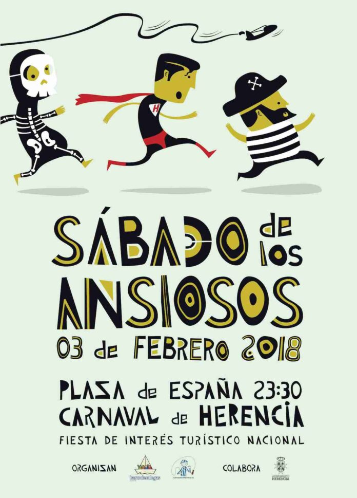 Para ello, las asociaciones “Carnaval de Herencia Denominación de Origen” y “Barco de Colegas”, en colaboración con el Ayuntamiento de Herencia, ya tienen todo preparado para el XII edición del Sábado de los Ansiosos. Y es que por Herencia podrán verse ya el sábado día 3 las clásicas “máscaras callejeras”, presagio inequívoco de que la fiesta ha roto aguas.