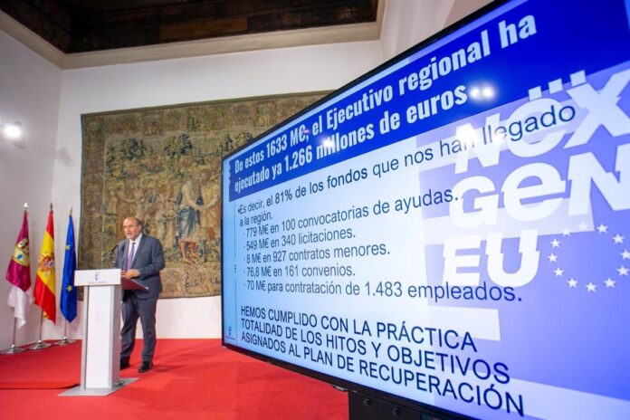 Castilla-La Mancha ha destacado en la movilización de recursos provenientes del Plan de Recuperación, alcanzando hasta la fecha 1.266 millones de euros de los 1.633 millones asignados, lo que supone un 81 por ciento de ejecución de los fondos destinados a la región. El vicepresidente primero del Gobierno autónomo, José Luis Martínez Guijarro, ha subrayado la intención de su gobierno de no solo completar el 100 por ciento de estos recursos, sino de superarlo, destacando que el ritmo de ejecución en Castilla-La Mancha supera al de otras comunidades autónomas.