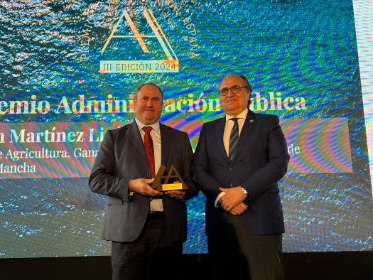 El consejero de Agricultura, Ganadería y Desarrollo Rural, Julián Martínez Lizán, fue el encargado de recoger el premio en Madrid, durante la celebración de la III Edición de los Premios Animal’s Health. Estos premios, de ámbito nacional, reconocen el talento, la trayectoria y la contribución de personas e instituciones en el sector de la salud animal en España, en pro de la Salud Pública.