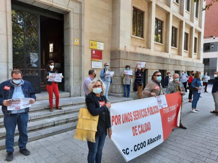 Fueron alrededor de medio centenar de delegadas y delegados de CCOO-FSC CLM que se concentraron frente a la Subdelegación del Gobierno en Albacete para exigir el cumplimiento de los acuerdos firmados en el ámbito de la Administración General del Estado (AGE y que ya acumulan más de un año y medio de retraso.