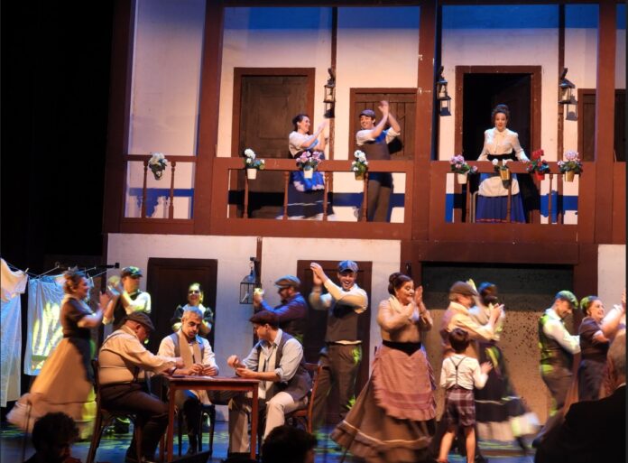 La compañía madrileña «Clásicos de la Lírica» presentó La Revoltosa, una de las obras más emblemáticas del repertorio lírico español, creada por los genios Silva, Shaw y Chapí. En total, 26 actores y actrices, junto a una orquesta compuesta por una veintena de músicos, dieron vida a este sainete lírico que narra la historia de amor entre Felipe y Mari Pepa, dos vecinos de una corrala madrileña de finales del siglo XIX que aparentan no llevarse bien.